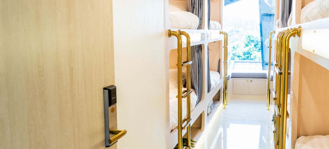 Fun, Friendly, and comfy room perfect for making new friends. 10 spacious beds, modern facilities, fully furnished with shiny gold ladders leading to the upper beds. Bathroom is located near the room for maximum privacy.